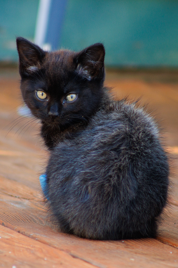 One day a little black male cat came to the door. We have lot of them in the neighborhood. It was really in bad shape and extremely friendly but with numerous wounds. I put some food out for it and brushed it when it came around. I had bench which converted into a little house in which and fed it, but it preferred to live under my porch and elsewhere over the winter.